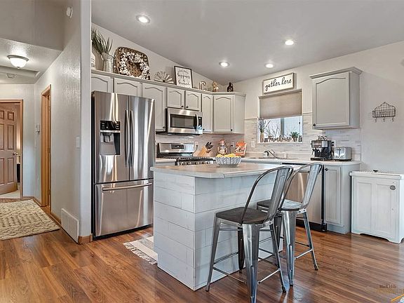 Listed by Shonna McBride, Oak & Key Realty, (605) 593, 7532. You will love this beautiful home that is move-in ready with modern updates! A tall entry with upgraded light fixture and architectural details greets you as you enter. The kitchen will wow you with light gray cabinets, new stainless steel appliances, and a stunning backsplash. New flooring can be found throughout the kitchen, dining, and living room areas. Down the hall, find a nicely updated bathroom as well as three bedrooms, all conveniently located next to each other. The lower level holds a family room with plenty of space for that home theater area or even a home office. Another full bathroom, laundry and storage areas can also be found on this level. The garage is great-sized and even has space for your work bench. Outside, enjoy the deck and backyard space that is fully fenced with wood privacy fencing. This home is stylish and modern, with all the features you are looking for. You will not want to miss it!