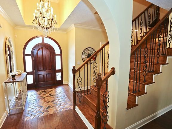 3D Virtual Tour Available - Be sure to click on the virtual tour link. Truly Move-In Ready! Custom-Built & Professionally Decorated! Heavily Updated! All Appliances To Remain! Lots of Natural Light! This fabulous 4 bedroom, 3 bathroom split plan home in the Villas of Oakhurst offers direct access to the large common space out front and all the neighborhood amenities out the back fence. The grand foyer entry is highlighted by hand scraped floors with a brick inset (matching kitchen/laundry floor) as well as a vaulted ceiling with an exquisite chandelier. Past the stairs with iron railing, the room opens to another vaulted ceiling over the keeping area/parlor and separated from the the great room by a double-sided fireplace. This area is also open to a formal dining area and kitchen with granite counters, pantry and breakfast bar seating. The master suite is accessed from beside the fireplace and the bedroom features a trey ceiling and overlooks the backyard. It is separated from the master bath by a short hall and walk-in closet. The bathroom offers double vanities, separate shower and jetted tub. Off the foyer to one side is a 2nd bedroom and down the hall on the same side of the stairs is the 3rd downstairs bedroom and other downstairs bathroom offering guest access. The 4th bedroom is upstairs and has its own bathroom and den with skylights that overlooks the living area. Access to the 2 car garage is through the laundry/utility room. And the large backyard has a nice patio area with no neighbors to the rear. Neighborhood has a nice clubhouse, swimming pool, playground, tennis courts and walking trails. Call today for your private tour.