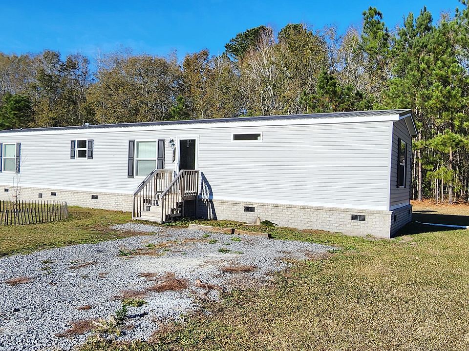 This well maintained home sitting on 2.26 acres is located only 25 minutes to Volvo and only 3 minutes to Black's Fish Camp on Lake Moultrie. 2 bedrooms and 2 bathrooms with a dual master floorplan with spacious walk-in closets in both bedrooms that allow ample storage space. Modern stainless steel appliances, custom cabinetry, farmhouse sink and gourmet range hood make this kitchen a great set up for entertaining or casual day-to-day life. This property offers a full 1 car garage, a 2 car carport and a 1 car/boat high top carport. The owner has a shooting range setup on the far right side of the property for target practice. This property also offers an additional RV hookup. There is a small pond on the front of the property stocked with catfish and bream.
