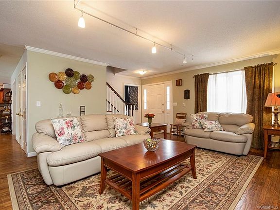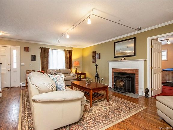 Versatile floor plan offered with this spacious Cape Cod home situated on a 1.90 acre lot. First floor features front to back living room with fireplace and pellet stove insert; formal dining; large fully applianced country kitchen with corian counters and stainless appliances; opens to spacious family room with cathedral ceiling, pellet stove and beautiful palladium window; large first floor bedroom with full bath and walkin closet plus a 31' sunroom with vaulted ceiling and skylights. 2nd floor features master bedroom suite with full bath & huge walkin closet; 2 additional ample sized bedrooms with great closet space; laundry room closet and another full bath. Lower level features rec room and access to an oversized 2 car garage. Driveway has been recently paved. Don't let this beauty pass you by
