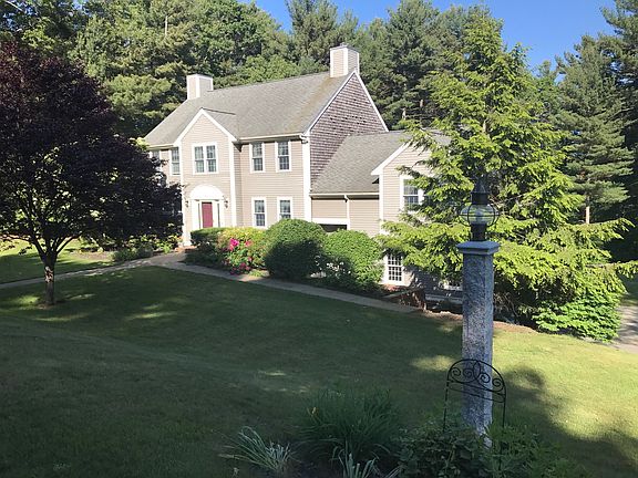 Welcome to Wampanoag Woods -This home was built in 1995 and offers over 3500 sq ft of living on three levels. This property is situated on an acre and has views of the pond. There are three and a half baths all updated. The kitchen has been updated with cherry cabinets, granite counters and tile floor. A newer sunroom with adjacent deck is just off the kitchen which overlooks the expansive yard. There is a cathedral ceiling family room with a gas fireplace Also off the kitchen is a half bath and separate laundry room. A dining room and living room complete the main level of the house, also with hardwood floors. The lower level offers a game room with a full bath and access to the oversize two car garage. The upper level offers four good size bedroom all with hardwood floors. The master has hardwood floors also, with a walk in closet and wonderful master bath with separate shower and jacuzzi. The designs you see on the walls are stenciling that easier can be painted over.
