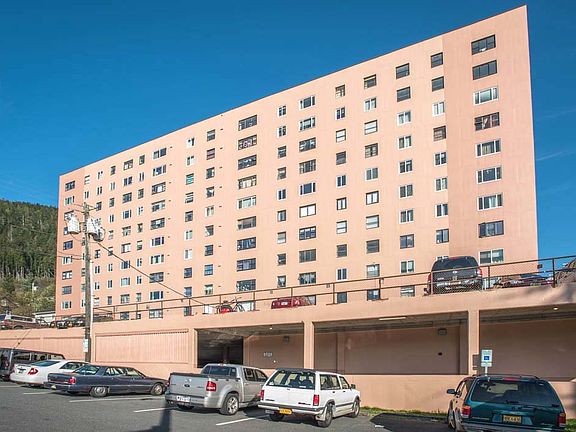 An exquisite 1 bedroom 1 bathroom condo in the Tongass Towers. Formally a two bedroom unit, the previous owners gutted this condo and remodeled it to a high end home. Oversized bathroom featuring both a jet tub and separate shower with beautiful tile throughout. Oversized kitchen with breakfast bar, tiled counter tops and more kitchen cabinets than you need. A view that reaches from Duke Island all the way to the Airport. Walking distance from the mall and the bus stop is literally on the corner of the building. Everything is there, you just have to move in.