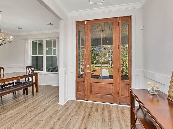 Welcome to this stunning 4-bedroom, 3-bathroom home located in a gated neighborhood, just moments away from both elementary and middle schools. With 2,812 sqft of living space, this home features a foyer that opens to an inviting living area, complete with coffered ceilings and a massive sliding glass door that brings in plenty of natural light. The formal dining room flows seamlessly into the gourmet kitchen which boasts a large island, stainless steel appliances, including a separate gas cooktop and double ovens, and a cozy breakfast area for casual dining. The home offers luxurious LVP flooring throughout and a spacious laundry room with a sink and ample storage, conveniently leading into the oversized walk-in closet in the primary suite. The primary bedroom is an oasis with double trayed ceilings, while the ensuite bath offers dual vanities, a soaking tub, and a separate tiled shower. Outside, you'll enjoy a beautifully designed brick and Hardi exterior, complemented by a 30x15 inground saltwater, heated pool. The screened porch overlooks the fenced backyard and pool, providing a peaceful retreat. Additional features include a 3-car garage with an electric car charger, irrigation system, gutters, a tankless hot water heater, and an alarm system, ensuring comfort and security. This home is truly a must-see!
