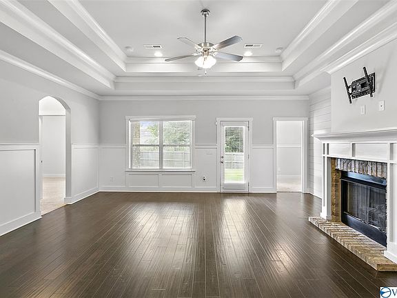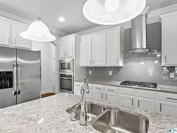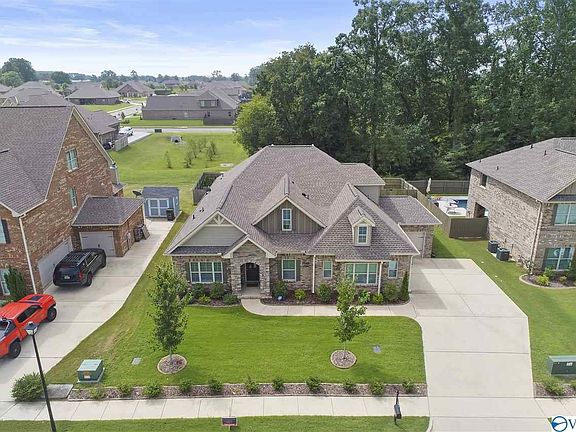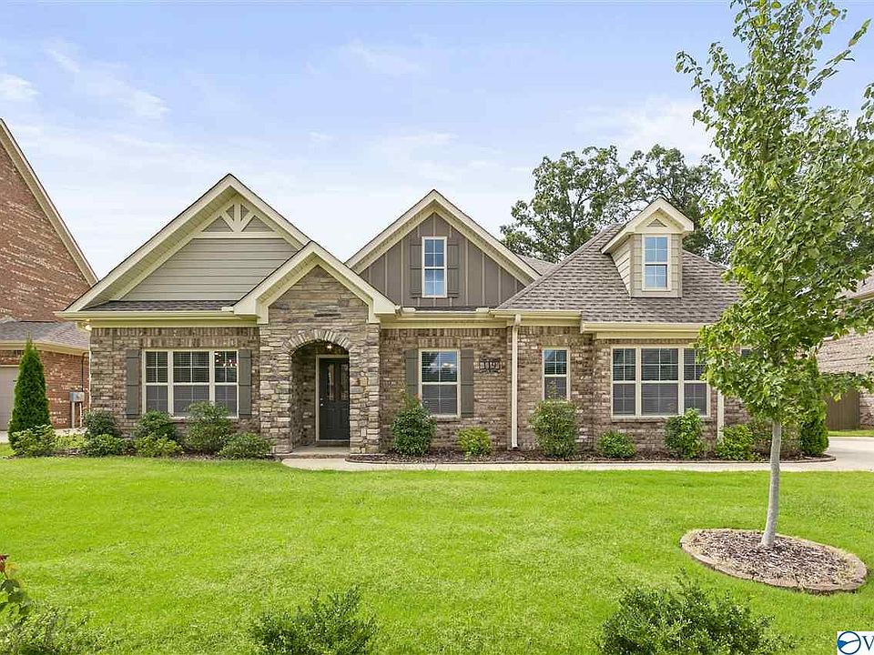 Needing 5 bedroom in Madison city? This former model home has all of the bells and whistles! Home features ranch style living with 4 bedrooms on the main level including the Master and 1 bedroom or Bonus room up with a half bathroom. Walk into gorgeous entry way with formal dining on one side and designated office on the other. Butlers pantry area. Marvelous open concept Kitchen and family area. Kitchen has huge island with sink, gas cook top, pantry and designer finishes. Family room has stacked stone gas log fireplace, shiplap accents and hardwood floors. Large Isolated Master bedroom with trey ceiling, en-suite connected to laundry and beautifully finished tile shower and double vanity!