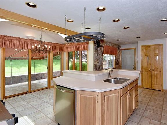 Exciting floor plan features tumbled marble foyer leads to living room w/hardwood floors & fireplace. Large remodeled kitchen w/stainless appliances, solid surface counters, center island, delightful dining area surrounded by 3 walls of glass, skylights & slider to covered patio & fabulous views of level yard. 3 bedrooms including master on main floor plus main bath w/large ceramic shower & body sprays. Extra large lower level family room complete w/second fireplace. Partially finished game room area & 2nd full bath in lower level. Imprinted driveway & brick walkway which extends to a the stone patio w/awning & sitting wall. 4 car garage is 2 car attached & 2 car detached. Lovely tree lined 1.6 acre lot! Hot tub ~ 4 yrs old. HVAC ~ 4 yrs old. Hot water tank ~ 1.5 yrs old. Plenty of storage.