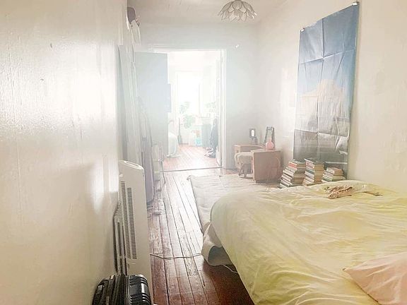 4 rooms railroad style. Very spacious many beautiful original details wide plank wood floors, high ceilings, original moldings and built in cabinets. Amazing location 2 blocks to McCaren park few blocks to Bedford L or Nassau G. Sorry no dogs! Cat is ok :)