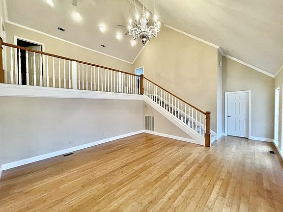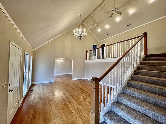 Gorgeous 3BR/3BA Home on almost 1 Acre! This 1.5 story home offers covered front porch, single attached garage, spacious living room w/vaulted ceilings and view of upper level, separate dining room, eat-in kitchen with beautiful cabinets, countertops and work island, main level master BR offers full bath, upper level master BR offers double vanities, sliding glass doors that lead out to upper deck and balcony access above garage. Convenient location, close to town, Lake Barkley and schools.
