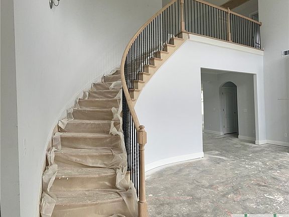 Discover the allure of Faircloth Homes 3665 plan, a 5 bedroom, 3 bathroom masterpiece that blends sophistication & comfort. A grand tone 2nd story foyer, leads into a dining area w/a stunning coffered ceiling & a living room/study. The uniquely grandiose point of this home is the 2-story Great Room, boasting an arched wall of windows that showcase a serene pond, bathing the room in natural light. A stunning GRAND spiral staircase adds a unique elegant touch. The gourmet kitchen features white cabinets, granite countertops, oversized granite island, a tile backsplash, double wall ovens, & a cooktop. Includes a first floor bedroom w/ an adjacent full bath. On the second floor, you will love the HUGE Primary Bedroom w/ a sitting area. The primary bathroom has a garden tub & separate shower w/ dual vanities, & a large walk-in closet. Upstairs there are more 3 bedrooms, & laundry room. This home comes w/ 2-in faux wood blinds, gutters, irrigation, & rear concrete patio cover w/ ceiling fan