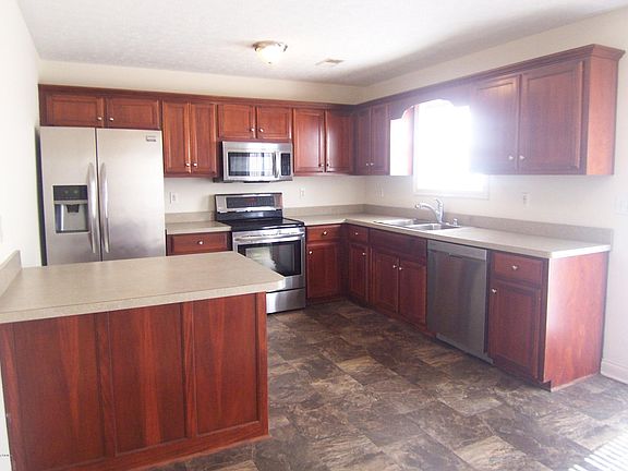 Bright and cheerful three bedroom two bath brick ranch situated on .36 acre lot in Hunters Ridge Subdivision. Home offers 1400 sq. ft. of comfortable living space with desirable split floor plan which allows for the utmost in privacy. Vaulted Living Room greets you as you enter the home. Eat in Kitchen provides plenty of nice cabinetry and comes equipped with a full compliment of stainless appliances including range/oven, refrigerator, dishwasher & microwave. Breakfast bar is an added feature. Nice laundry room comes equipped with washer and dryer. Spacious vaulted master suite & two additional bedrooms and full bath housed on the opposite side of the home. Nice back yard with deck for outdoor enjoyment & outbuilding provides additional storage. Near town & great commute location.