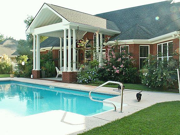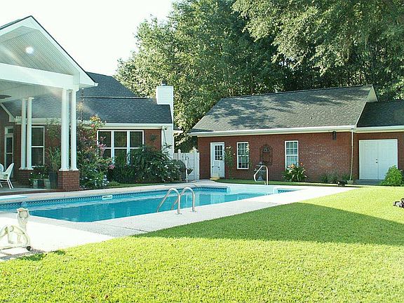 Everyone has their own room in this traditional all brick 5-bedroom/4.5-bath home in Guyton. Enter through the classic foyer on your way to the welcoming great room with vaulted ceiling, wood floors, fireplace and view of the patio and in-ground pool. The master suite has a separate patio entrance, ensuite with separate shower, whirlpool tub, dual sinks, makeup table, and large walk-in closet. Serve special dinners in the formal dining room with butler's pantry, or relax in the comfortable gathering room with fireplace while the food is being prepared in the large kitchen with abundance of counter and cabinet space. Irrigation well to keep your grass green and plush all year long. New paver patio and fire pit add to the beauty of the yard.
