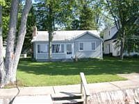 HOUGHTON LAKEFRONT: 52' of North Shore Lake Front. 2 bedroom, possible 3rd, 4 car 24x42 garage with upper floor storage or finish for additional living space. Slate wood burningfireplace T and G wood walls and ceilings. Great location private and remote! With lender approval ''short sale''.