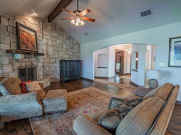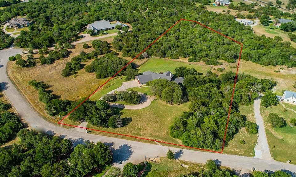 Enjoy a slice of Texas paradise in this sprawling 4BD, 4B home located on 3.3 acres in private in gated subdivision. Imagine celebrating special occasions with your friends & family in the beautiful living room featuring hand scrapped floors, stone fireplace, and open-concept. Large master has back patio access with on-suite featuring garden tub & generous closets. Plenty of room to roam outside in large backyard that features fire pit, covered patio, and seasonal creek at back of property...plus plenty room to add your dream pool ! You may even spot a deer among the many oak trees on property while still being located close to restaurants, shopping, freeway, and minutes from Fort Worth! This one is a must-see!