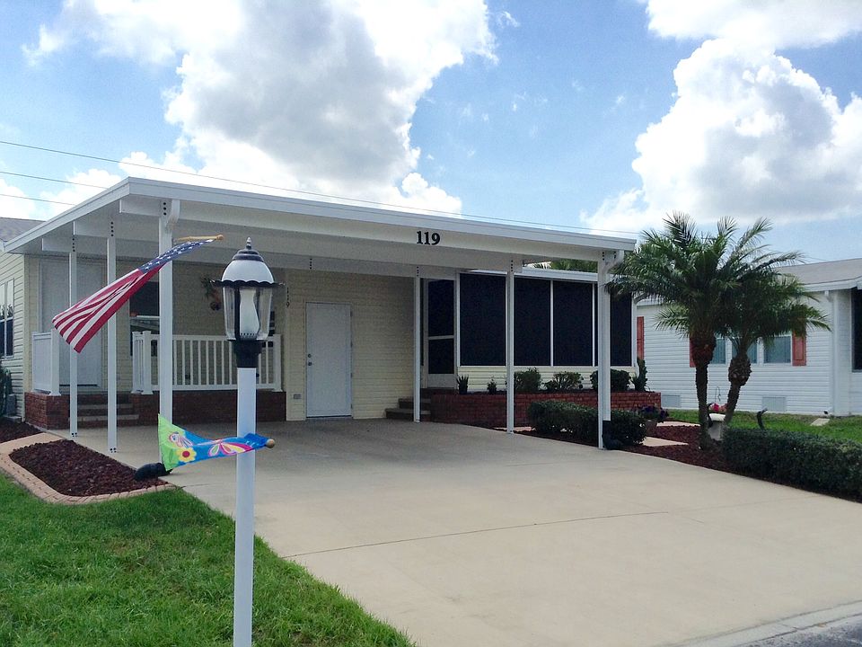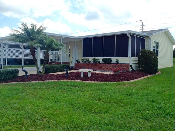 Pride of ownership is evident in this home that shows like a model. This is a VERY popular floor plan with split bedroom set up and a den with french doors in addition to the 2 bedrooms. Everything in this home is newer including A/C, windows, flooring (beautiful wood laminate, tile, and commercial grade carpet), acrylic windows in lanai, and the roof! Wow! Move right in because nothing needs to be done. Kitchen is light and bright and features a breakfast nook and tons of cabinetry. Master bedroom has 2 closets and master bathroom has 2 separate sinks. Wonderful private lanai off the kitchen with acrylic windows, so you can use the area year round. You don't want to miss out on viewing this home!!! Located in a 55+ leased land community with tons of activities and resort quality amenities.