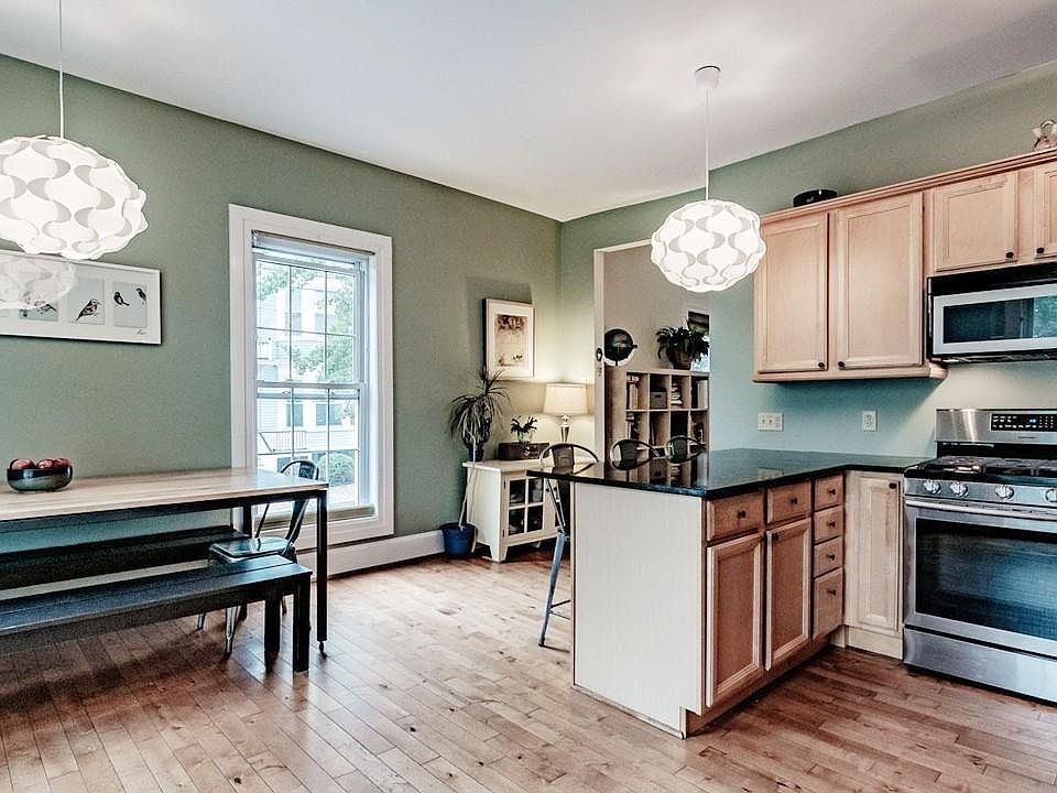 A West End condo with two full baths and nearly 1,100 square feet of living space. In one of the world's best walking neighborhoods, this is a rare offering. Huge granite-and-stainless kitchen boasts soaring ceilings and over-sized windows. Large living room with exposed brick, a full bath, and laundry round out the first floor. Above are two bedrooms including a very large master with en-suite bath. Recent paint throughout; brand-new, efficient gas heat. Pet-friendly HOA with low fees. Extra storage in basement.