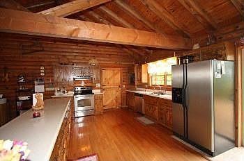 A Log Home, Waterfront, Water View, a Private Dock...and everything is in tip-top condition! The care is evident!!! And it is all privately located on a very pretty area of Table Rock Lake. Use this home as your primary residence or your family's retreat! There is a second kitchen and room enough for a pool table, enjoy the deck, the patio, the yard, the lake, the private dock - there is a workshop too!