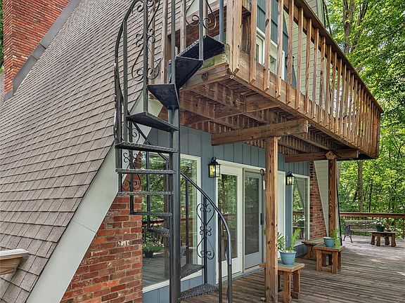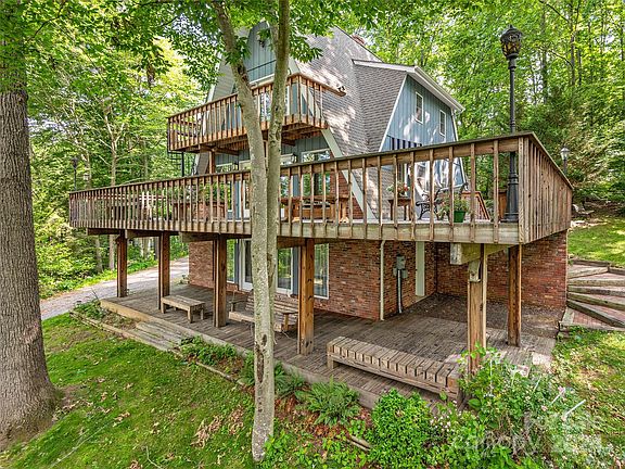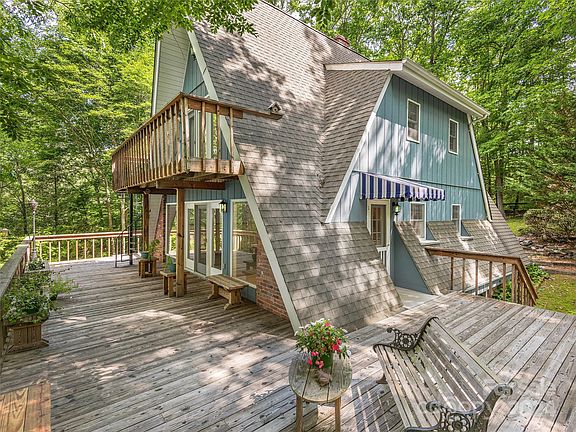 Nestled within the charming city limits of Clyde, NC, this picturesque A-frame residence invites you to experience the epitome of mountain living. Step inside to discover a warm and inviting ambiance, accentuated by a cozy wood-burning fireplace that serves as the heart of the home. The kitchen boasts a blend of Formica countertops, offering both style and functionality, while front and side wood decks provide ideal spots for enjoying the surrounding scenery and fresh mountain air. Below, a spacious basement awaits, complete with a garage for convenient parking, a laundry area for everyday chores, and ample workshop space for tinkering on projects or storing outdoor gear. Embrace the tranquility of small-town living combined with the comforts of a mountain retreat in this delightful A-frame oasis in Clyde, NC. Approx 15 minutes to Waynesville, 32 minutes to Asheville, 20 min to Maggie Valley, and 40 min to Harrah's Cherokee Casino.