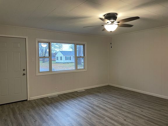 Interior : Many new upgrades. Freshly painted ranch home with new; flooring,interior doors, bathroom medicine cabinets and toilets, kitchen sink /faucet, ceiling fans and front storm door. Big eat in kitchen with additional dining room /office attached. Laundry room with washer /dryer hookups. Exterior : Deck off back of house 2 car garage with new garage door /opener Quiet and safe neighborhood One year lease. Mowing and garbage included. No pets. First months rent /deposit.