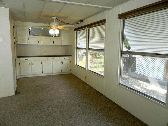 Mobile home in Roguelea Estates a 55+ Community. Spacious living room, formal dining and updated kitchen with newer appliances. Master bedroom with triple wardrobe, master bathroom has step in shower. Standard 2nd bedroom. Hall bathroom features new counter top and sink, & newer tub surround. Laundry room. Covered Patio/Deck, small little pet area with astro turf. Carport with storage closet. Space rent $945/month includes water, Sewer & Garbage $28.43 per month. 2 Pet must be approved by park management.