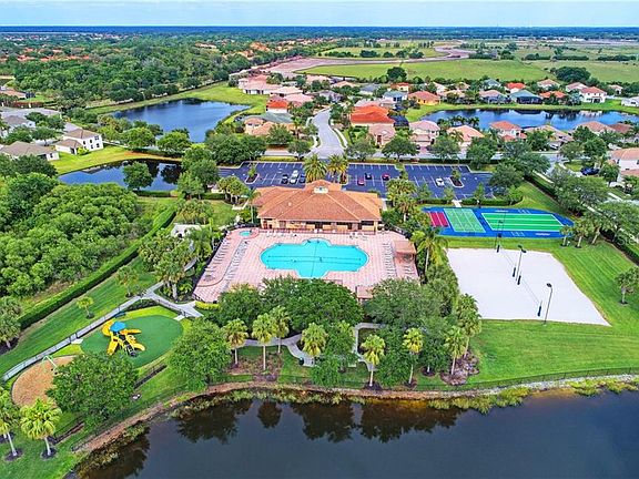 STONEYBROOK - Well-maintained 3-BEDROOM quality home in the GATED golf community of Heritage Harbour. Built in 2007, with brand NEW ROOF, brand NEW AC, on a cul-de-sac lot and a beautiful brick pavered front entry. Open floor plan with a kitchen/great room combination with long breakfast bar. Kitchen features also include integrated wood cabinets, solid-surface counters, tiled backsplash, 10-foot ceilings with crown molding, tray ceiling in great room, recessed lighting, stainless appliances. Plantation shutters highlight the bedrooms and kitchen nook. Sliding doors in great room flow to a comfortable, screened and extended outdoor living area with peaceful, landscaped views. There is a spacious master bedroom suite with his/her walk-in closets. The master bath features a Roman shower, soaking tub and dual sinks. The inside utility room with washer and dryer has elevated custom cabinets. This is a great location with very easy access I-75 to Tampa or Sarasota, shopping, Costco and several restaurants. You can even bike to the gorgeous Jr sized Olympic community pool, spa, fitness, tennis, sports courts and playground. Stoneybrook is surrounded by beautiful ponds and an 18-hole privately owned golf course with restaurant which is open to the public. Anna Maria Island and the Pirates spring training complex only a short car ride away. Come tour this beautiful home today!