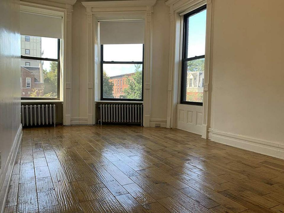 This one bedroom apartment is located in a corner brownstone at Brooklyn Ave and features a large living room with three huge windows, two facing Brooklyn ave and one Bergen st, a decent size bedroom, a modest kitchen, hardwood floors, and high ceilings. The apartment is literally one block away from the Brooklyn children museum, and park.