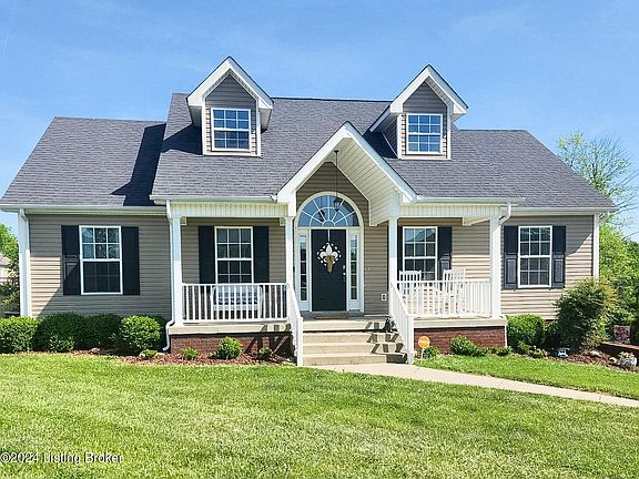 Located in Bardstown, KY, previously voted the Most Beautiful Small Town in America, this beautifully maintained walkout ranch awaits in the Copperfields community! A charming covered front porch welcomes you home where natural light fills the spacious great room with its soaring ceilings and hardwood floors. From there, the eat-in kitchen offers classic white cabinetry, stainless appliances, breakfast bar peninsula seating and dining area with access to the upper-level deck. Laundry conveniently located just off the kitchen. The split bedroom floorplan offers optimal privacy in the vaulted primary suite with private bath and walk-in closet. Two additional bedrooms and full bath complete the first floor. The unfinished walkout level awaits your finishing touch offering limitless possibilities & plenty of storage. Enjoy the outdoors from either the upper-level deck or walkout level patio. Two car garage. Seller to offer an America's Preferred Home Warranty!