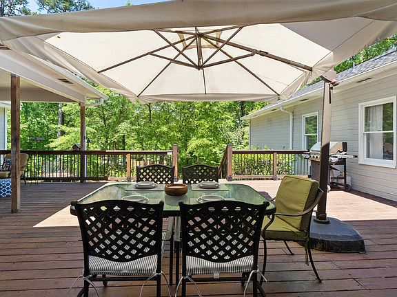 Located in a quiet cove on Lake Sinclair this well appointed home offers plenty of privacy and a large partially covered deck that will become a favorite gathering spot for family and friends after spending your day on the lake!. As you enter this lovely home you are welcomed into an open and airy design that is sure to please! Bring your guests into the large living area that offers plenty of space to entertain. The dining area is open to the living room and there is a breakfast room as well. The kitchen is well equipped and the appliances will convey with the sale. The coffee/wine/wet bar is just one bonus and the ensuite master bedroom/bath are to die for, it is spacious and includes a sitting area with fireplace where you can cozy up with your favorite book. The master bath is also spacious and well designed. The home has been updated and recently painted and the roof was replaced last year. There is a 2 car garage and a single stall boathouse and seawall. Call to schedule an appointment to see this one today.