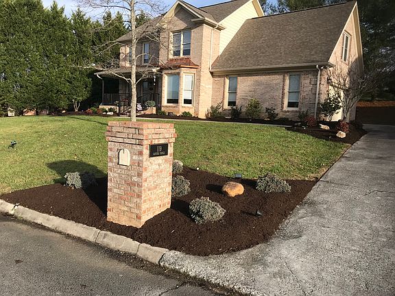 Outdoor patio next to deck; professional landscaping; sprinkler systems on beds; and new porch with railing.