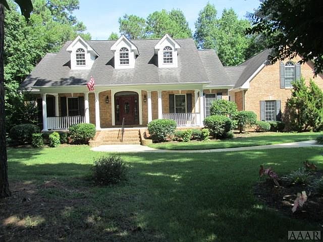 Beautiful custom built brick golf course home with all new appliances installed in 2016 and new built-ins in the frog as well as stunning new American walnut hardwood floors in living room, dining room and kitchen. This Albemarle Plantation home, with irrigation system, is in move-in condition priced under assessed value. Great opportunity! Just bring your furnishings! Albemarle Plantation is the premier golf and boating gated community in northeast North Carolina.