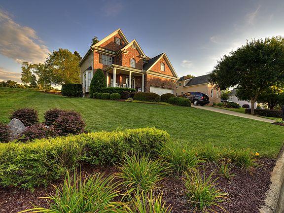 On the golf course! Custom built three BR plus bonus! Huge sunny kitchen with Granite countertops and Tile backsplash, front porch. Brick front, fiber cement siding, custom deck in back facing golf course, irrigation system and gorgeous landscaping.