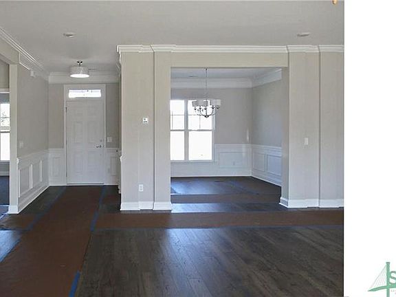 Under construction - Southport III by Landmark 24 Homes is a ranch style plan with lagoon view. Features: expanded covered back porch with raised foundation, upgraded stainless steel appliances to include double wall ovens,smooth cook top, vented canopy hood dishwasher, french door refrigerator, tile back splash behind canopy hood; additional upgrades: elevation, flooring, cabinets, counter tops, tile, kitchen faucet, flooring and much more. Includes, kitchen island, hall tree with built in bench, fireplace and platinum interior trim. Amenities include: clubhouse, fitness center, tennis courts, swimming pool and playground. Great location: Close to shopping, airport, interstates and approximately 20 minutes from historic Savannah. Available now!