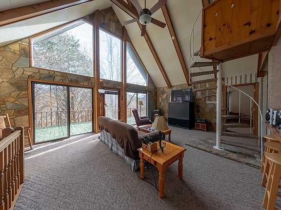 Nice spacious home w/ tons of living space in a super convenient location, 1/2 way between Franklin, NC & Clayton, GA this home has amenities & grocery stores within a mile & a 1/2. Mountains & ease so close to your door. Main level living w/ great open space, cathedral ceilings, large windows, 4 sets of sliding doors & an entire rock wall. Kitchen has a lots of storage inc. a pantry w/laundry hookups & breakfast bar that sits nicely in between the kitchen & living, perfect layout for entertaining!! Master bedroom w/ en-suite has a large walk in closet & sliding doors to the deck. 2nd main level bedroom also has a walk-in closet, sliding doors to the deck & a bathroom that doubles as a guest bath w/ access from the bedroom or kitchen. Upstairs loft area could be used for a number of purposes: for a play area, office, sitting room, craft or guest room, options are endless... and head downstairs to the family room w/ two addtl bedrooms. Family room has outside access to a nice covered terrace. Laundry hookups downstairs (in addition to main level). Full bath located on the lower level off the living room. Outbuilding for addtl storage. U shaped paved driveway.