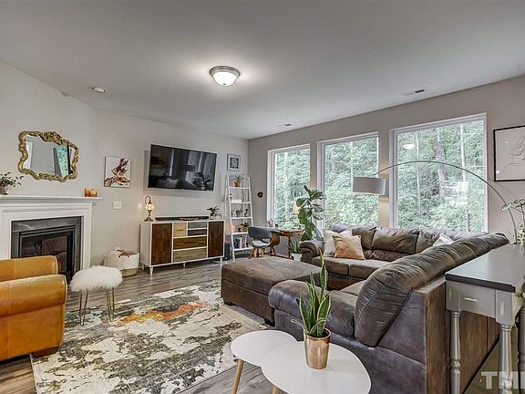 Immaculate & move in ready home in prime Chapel Hill location. Open floor plan. Hardwood style floors throughout 1st floor. Spacious family room includes gas log fireplace. Separate dining area. Bright & open eat-in kitchen offers island, granite tops, s/s appliances (gas range) & subway tile backsplash. Large master suite has oversized tile walk in shower & quartzite dual vanities + walk in closet. Covered back patio with wooded views. Fenced backyard. No neighbors to your right. Nestled on quiet street.