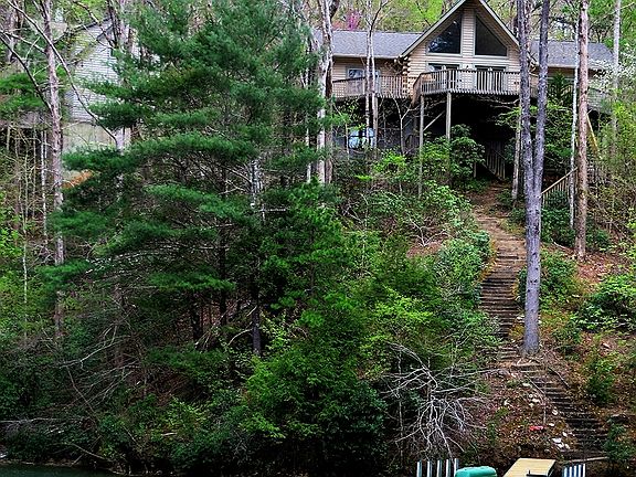 A private 3+ acre retreat located on the North end of the South Carolina's premiere lake, Lake Keowee. In a small gated neighborhood of only 5 houses. The recently renovated main house features three bedrooms and two full baths with open floor plan, hardwood floors, granite counters throughout, fireplace, loft, ample decking and breathtaking mountain views. Home has a full unfinished basement with additional fireplace. Detached four car/boat garage offers separate two bedrooms/one bath guest apartment with full kitchen and private decks. Ideal for entertaining indoors and out, executive retreats and multiple family home. Dock already in place. Great rental income potential.