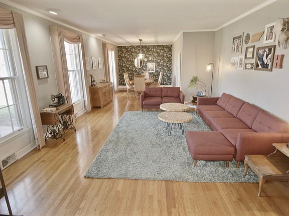 Back on market due to buyer financing. Motivated sellers. Sellers' FHA loan with monthly payment of $2,665.67 is assumable. All-brick home on a large corner lot. Packed with well-kept Midcentury features. Large living room, rec room with kitchenette, dining room, and covered patio provide prodigious potential for entertaining. Laundry room with sink and second dishwasher. Sizable bedrooms. Large unfinished basement (not included in total square footage) with storage and workshop. Fireproof garage for car hobbyists. Beautiful back yard with brick and stone features. Ample parking. So many options for renovation, investment, storage, or preserving historic character. 1-year-old refrigerator, 2-year-old washer and dryer, 2-year-old HVAC units. New ceiling fans and faucets in master.