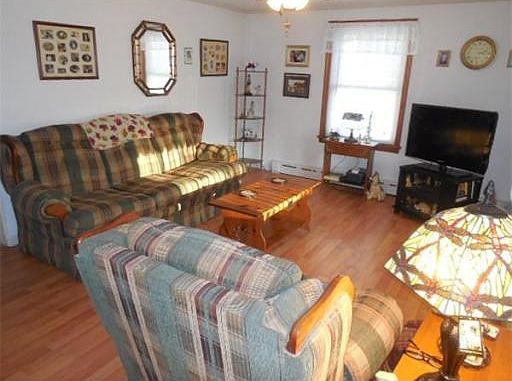 Great curb appeal and privacy at the end of the Cul de Sac! You will love this well cared for home! Easy one floor living with gas heat but has additional finished rooms in the basement. The lower level has some unexpected extras including a wall electric heating unit, a bath roughed in (APO), great closet /storage spaces and a bulkhead exit. There are some newer windows in the home and all new windows installed in the basement. The kitchen is updated with extra cabinetry. There's a beautiful Bathfitter's bath installed. This home has all neutral décor and is move in ready. The sunroom/mudroom transitions you from the garage into the kitchen, but it could be used as an office/den with the great lighting from the bow window. There is a fenced in level yard with a newer shed. Extra paved parking spaces are inside the fenced in area. The one car garage also exits to the yard and double size lot! Excellent value in this well maintained home!