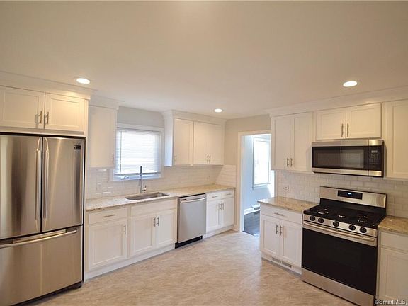 Charming Remodeled Colonial on a double corner lot. Complete turn key condition - featuring new roof, new kitchen with custom cabinets, granite countertops, subway backsplash and new high end stainless steel appliances. Living room with recess lights and fireplace. Formal dining room and eat in kitchen. Heated - Bonus room off living room. New propane furnace, new water heater, updated electrical and plumbing, new paint and refinished hardwood floors. Detached car garage. Nothing has been left undone. Truly a must see!