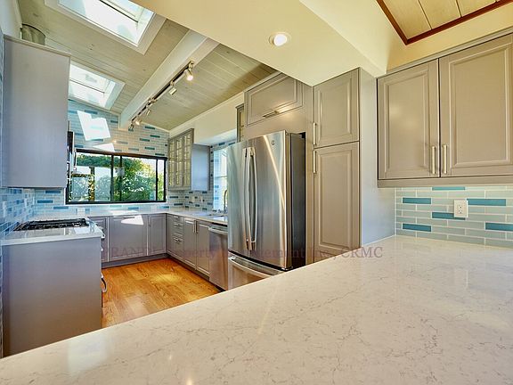 You must see this completely remodeled, luxury rental, a unique offering in the market, where no detail was spared in its tasteful design. Experience unparalleled, panoramic views of the San Francisco skyline, Alcatraz, Angel Island, and the Bay Bridge from nearly every room and from three separate decks. The home is bathed in ample natural light thanks to its south-facing orientation and abundance of oversized windows, highlighting the gorgeous oak hardwood floors and designer light fixtures throughout. The private primary suite is a true retreat, featuring an oversized soaking tub with stunning SF views and a private deck. With a versatile layout, two separate full-size kitchens with all new appliances, and an extremely quiet street location, this home offers flexibility and tranquility. Complete with a 2-car garage and convenient freeway access, there is truly nothing on the rental market quite like this property. A small dog would be considered, upon approval with an increase in the deposit.