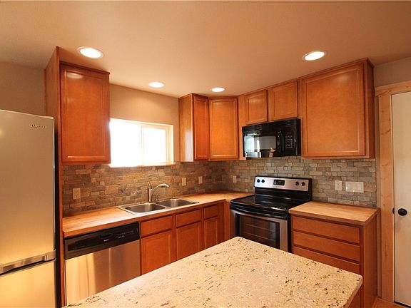 3 bedroom, 2 bath home on quiet dead end street in Cle Elum. Recent remodel includes a granite topped island in the kitchen, butcher block countertops, stainless steel appliances, stone accents, slate entry, and cozy corner propane stove with stone surround. In the backyard, you'll find alley access, patio area, and 2 RV hook ups! Strong rental history.
