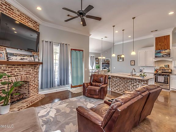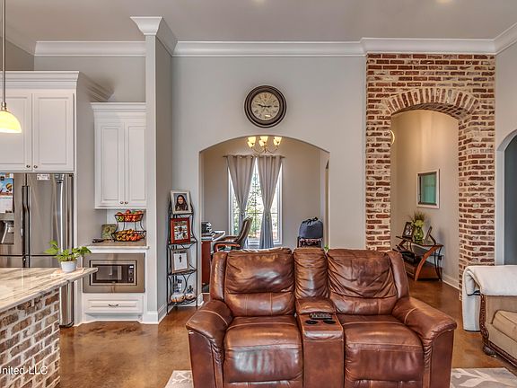 Welcome to 119 Coventry Lane in lovely Greenfield Station! 100% USDA financing in this coveted neighborhood with pool and clubhouse. Nearly new at just 5 years old, this 4 bedroom 2 bath home has a lovely open floor plan with plenty of room at 2069 square feet. Enjoy plenty of design detail like the brick archway and fireplace with hearth. The arched doorways repeat throughout the main area of the home. Stained concrete floors throughout - no carpet! The kitchen has light colored granite countertops and stainless appliances and a great view to the private backyard. There is a formal dining room as well as a breakfast area off the kitchen. Retreat to the luxurious master suite where a vaulted ceiling and fan enhance the sense of space. The master bathroom offers a serene escape with a separate shower and a soothing soaking tub. A remarkable feature is the expansive master closet that conveniently opens to the laundry room - a perfect blend of convenience and functionality. The front yard has special landscaping details and the backyard has a wood privacy fence. This beauty should go quickly, so book your private tour today!