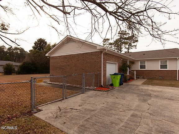 FIXER UPPER: 3 bedroom 2 bath ranch home in Tryon Park, conveniently located to MCAS Cherry Point. The home includes a formal and an informal living area with wood burning fire place, large fenced in back yard. All appliances convey, including washer and dryer. The roof was replaced in 2018 and the HVAC is approximately 5 years old.