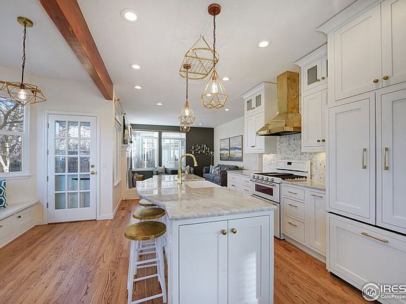 Stunning and elegantly remodeled Louisville home with space to breathe! Two story ceilings, hardwood floors in every room, and tons of natural light. The crown jewel is the gorgeous renovated kitchen featuring Carrera marble counters, custom cabinetry, panel-overlay KitchenAid appliances, gas range with brass hood and Anthropologie lighting/hardware. A sunny nook with banquette seating, beautiful dining space & cozy family room with fireplace round out the main level. The spacious primary bedroom features a custom ensuite with a scalloped marble "mermaid" shower, dreamy tub, dual sinks & walk-in closet. 2 bedrooms, full bath, and laundry are also located on the upper floor. The finished basement includes 2 beds, full bath & storage space. The backyard is perfect for outdoor dining & relaxing, with space to play with mature trees and garden beds. Set on a cul-de-sac in wonderful neighborhood close to Fireside Elementary, Rec Center, Davidson Mesa and charming Downtown Louisville.