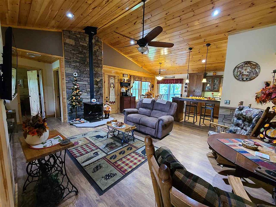 - INTERIOR AMENITIES: Walk-In Closets, Cathedral/Vaulted Ceiling, Whirlpool, Pantry, Ceiling Fan, Security System, Flue, Smoke Detector, Garage Opener, Solid Surface Counter