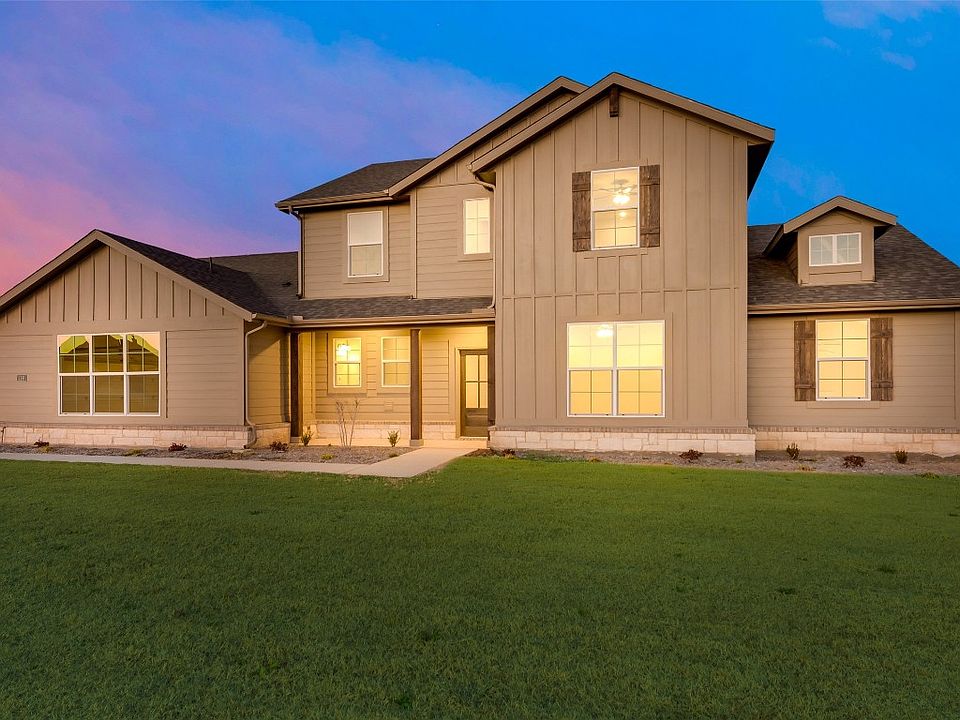 The covered front porch leads inside to a foyer, inviting you into the first floor of the home with a home office right off the entrance. Through the foyer you’ll find an open-concept living space, which includes the light-filled family room, dining area and gourmet kitchen. The kitchen features a large kitchen island, walk-in pantry and access to a mudroom with storage, separate laundry room, powder room and two or three car garage entrance. The family room features a grand corner fireplace, large windows and views of the covered back patio. A first-floor owner’s suite finishes off the main level, which includes a large bathroom with dual-sink vanity, water closet and spacious walk-in closet. The second floor of the Sabana opens up to a loft area that can be used as an informal living space or media room. Down the hall you’ll find two full bathrooms and three additional bedrooms with closets. There’s also a linen closet that can be optioned into an enclosed study area