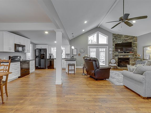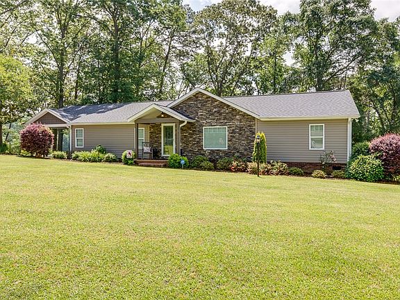 Gorgeous 3 bed 2 bath lake home all on one level with low maintenance design! Enjoy lake views and an easy walk to the dock in this completely updated, immaculate and renovated home. The open floorplan features a spacious great room with lofted ceilings, stone fireplace with gas logs and french doors leading out to the large screened in porch overlooking the lake. There is ample space for entertaining in the modern kitchen with new cabinetry and pantry storage. Off the kitchen is the large 4 seasons room where the scenery can be enjoyed all year round. The master suite is equipped with a walk in closet, dual sinks, walk in shower and separate soaking tub. The first guest bedroom is oversized, with widened doorway and right across the hall from the handicap accessible bathroom. The second guest bedroom has views of the lake. It is a gentle walk to the lake and the dock. Situated in a peaceful cove right off the main channel and conveniently located (less than 2 miles to I-85), this is perfect for a permanent residence, vacation home or rental property! This home underwent a major renovation in 2017. Updates/upgrades include new roof, new windows, luxury vinyl waterproof flooring throughout the entire home, hvac, kitchen, bathrooms, interior and exterior doors, new screened porch, carport, new gutters and more.