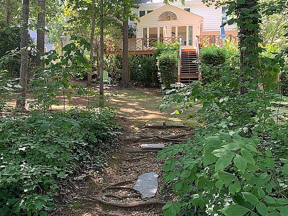 This unique, picturesque home is located at the end of a private cul-de-sac in Saratoga Park and has direct access to Bond Lake Trail and the Greenway. 10 rooms including 4 bedrooms, 2 ½ baths and finished third floor bonus room. Granite countertop kitchen, screened-in porch and breakfast room offer stunning panoramic lake views all year round. Wrap around deck overlooks well maintained ½ acre lot. Other amenities include WIC’s, vaulted ceilings, 2nd floor laundry and storage. Close proximity to first class school systems, YMCA, RDU and RTP.