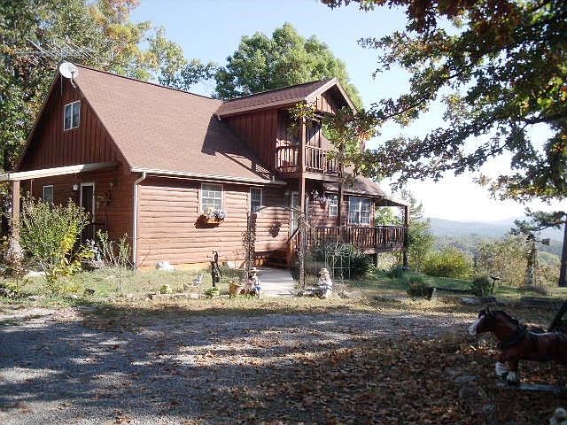 If you want privacy, Here It Is !! 19.54 acres, wooded, great view, 3 BR, 3 BA, walk-out basement, loft, over sized detached garage, lots of natural wood inside, lovely home, shows well. Nice spring on property, could be developed into a pond.