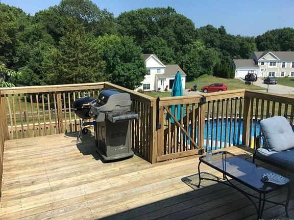 3BR, 2FB Raised Ranch in Mystic. Bright, sunny open floor plan, vaulted ceilings. Double sliders to large 2-tier back deck and above ground swimming pool. Master bedroom suite. Lower level has huge family room, laundry room, storage room / work shop and plumbed for additional 1/2 bath. Central air. 1 car attached garage. Home in very nice, clean condition. Wonderful neighborhood with common playscape and close to downtown Mystic.
