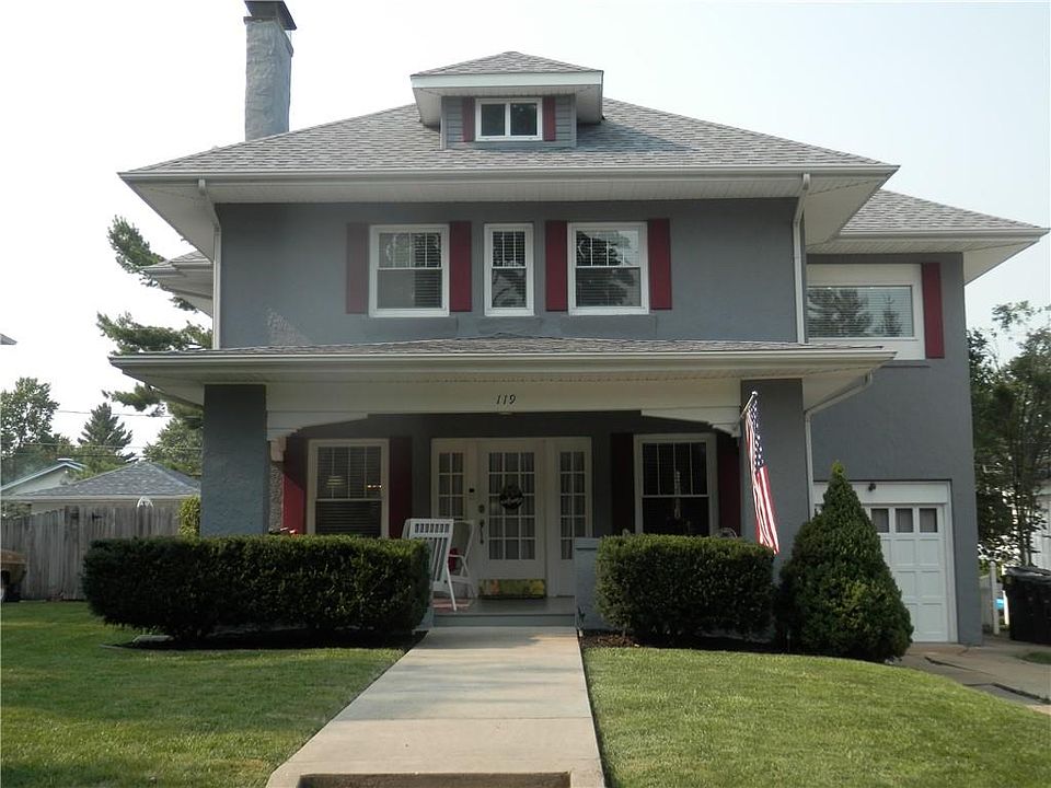 BEAUTIFUL, SPACIOUS home just off of Vermilion street! The covered front porch welcomes you to this home that has been updated & beautifully decorated from the finished basement to the finished attic. Original wood beams in LR greets you along with fireplace and Coffered beams in DR. All woodwork & entry door is original also. Updated kitchen has a huge island & overlooks the back yard. This gorgeous home offers new engineered hickory hardwood flooring on main level & 2nd level flooring has been refinished. Roof is 2 years old, new A-coil in the furnace last year, A/C is 10 yrs old and there is 200 amp electrical service. New carpet in lower level where you will find a cozy 2nd living area & very large laundry room & extra storage. Roomy 3 Bedrooms on 2nd level and 1 spacious BR on the 3rd level, all with walk-in closets. The fenced yard includes a nice 5 year old deck & great patio area, gazebo will stay! Exterior is low maintenance Solid Masonry.