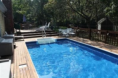This bright Riverbay home offers multiple living spaces indoors and out! Updated kitchen w/granite counters, stainless appliances, breakfast bar, and cork flooring. Walk-in pantry off the kitchen could also contain a washer & dryer for easy one-floor living. Dining area has a wall-sized picture window that lets the sun shine in. Relax in the adjacent family room w/oversized fireplace & built-in TV cabinet, or in the separate living room w/pretty bay window. Three bedrooms down the hall, including a master with private full bath and patio door to the deck. Lower level also offers 684 sq feet of finished space if needed. Large fenced-in yard, a cute garden shed, and extra parking. Plus, your own heated swimming pool surrounded by built-in mahogany decking offers a refreshing end to hot summer days. Don't miss out! Neighborhood Description Riverbay Estates is a residential neighborhood located just 10 minutes to downtown Chatham, and less than 10 minutes to a major grocery store and shops. Schoolhouse Pond (freshwater) is 1 mile away, and you're about 2 miles to popular Nantucket Sound beaches.