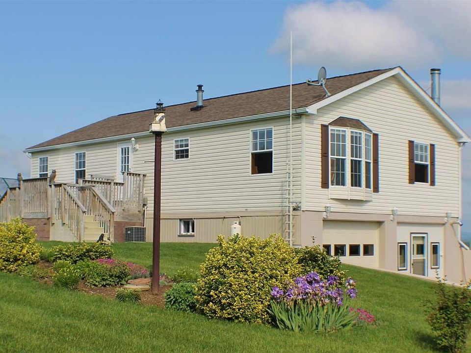 Lovely 2 bedroom 2 bath home on landscaped lot w/beautiful valley views. Large eat in kitchen plus dining area; large living room w/pellet stove fireplace; master bedroom w/private bath; second bedroom w/walk in closet. Fully insulated full basement w/2 car garage & pellet stove. Greenhouse included. Shed stays & includes mowers. Pellet stoves will heat entire house.Wired for generator (generator negotiable). Drilled well 45gpm. Wonderful property - not to be missed! Pictured furniture is negotiable.